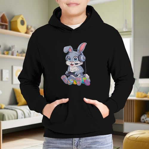HOT ! Kids Cool Happy Easter Day Rabbit Gamer Egg Funny Boys Girls Lightweight Kangaroo Pocket Hoodies