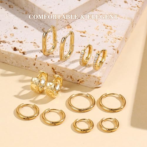 • 💖【18K Gold Plated Material】: Gold hoop earrings are made of high-quality 18K gold plated, lead and nickel free, hypoallergenic. Hoops with 14K gold plating and highly polished on the surface, they won't hurt your sensitive ears. It is safe and comfortable to wear every day. These gold hoop earrings will bring you a better wearing experience.