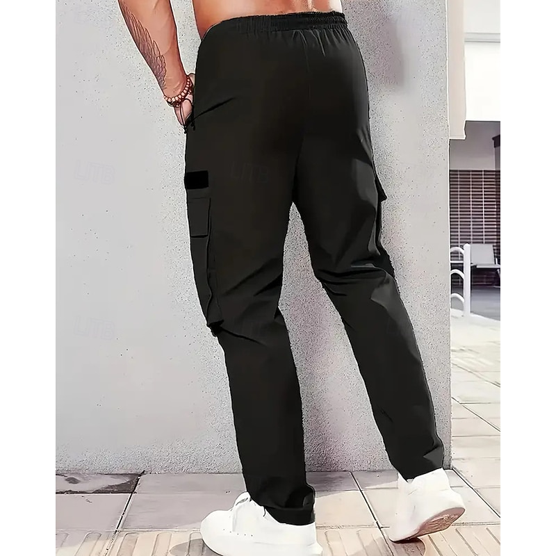 More information about Men's Cargo Pants Trousers Drawstring Pocket Elastic Waist Plain Comfort Sports Outdoor Daily Fashion Casual Black Khaki Micro-elastic