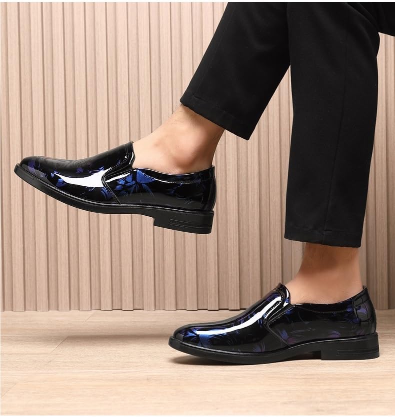 Men's Dress Shoes Slip On Round Toe Size 38-47 Patent Leather Floral Oxford Shoes Anti-Slip Low Top Wedding/Interview/Commute 5