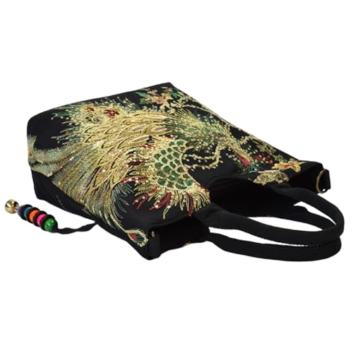 HOT ! Women's Shoulder Handbags, 10x9x5" Ethnic Travel Bohemian Embroidery Bag with Bling Sequins Phoenix Embroidered, Capacious Portable Vintage Purse for Daily Use Embroidery Bag