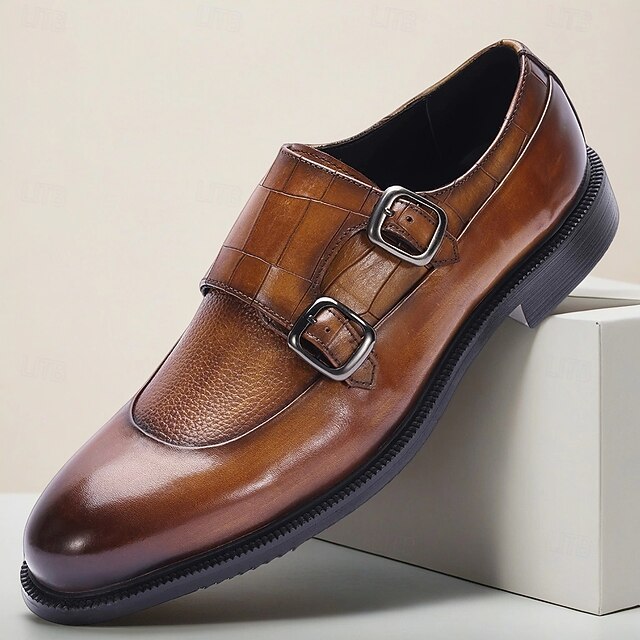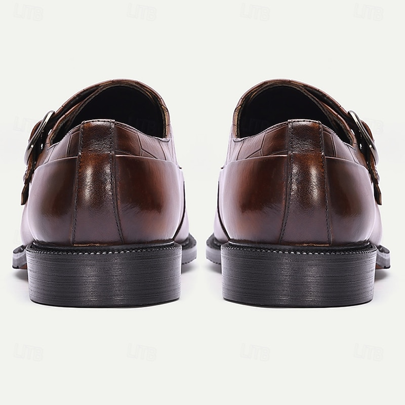 Men's Two-Tone Leather Monk Strap Dress Shoes – Classic Buckle Loafers for Gentlemen, Business Meetings and Elegant Gatherings 6