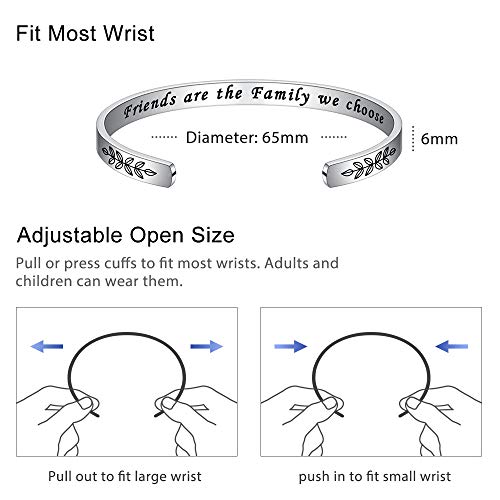 • FRIEND GIFTS: “Friends are the family we choose” bracelet with engraving friendship saying, make the perfect friendship gifts for your close friend, new sister, sister in law, soul sister gifts. Sister bracelet to express how much you care about her.