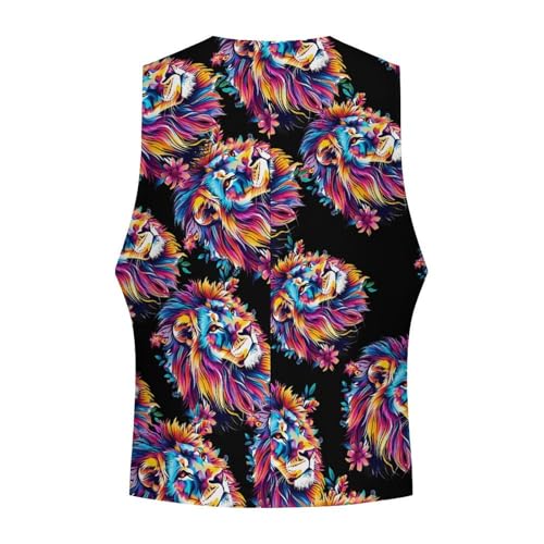 Lion Colorful Lions Men's Suit Vests Business Formal Dress V-Neck Waistcoat Tops with 2 Pockets 1