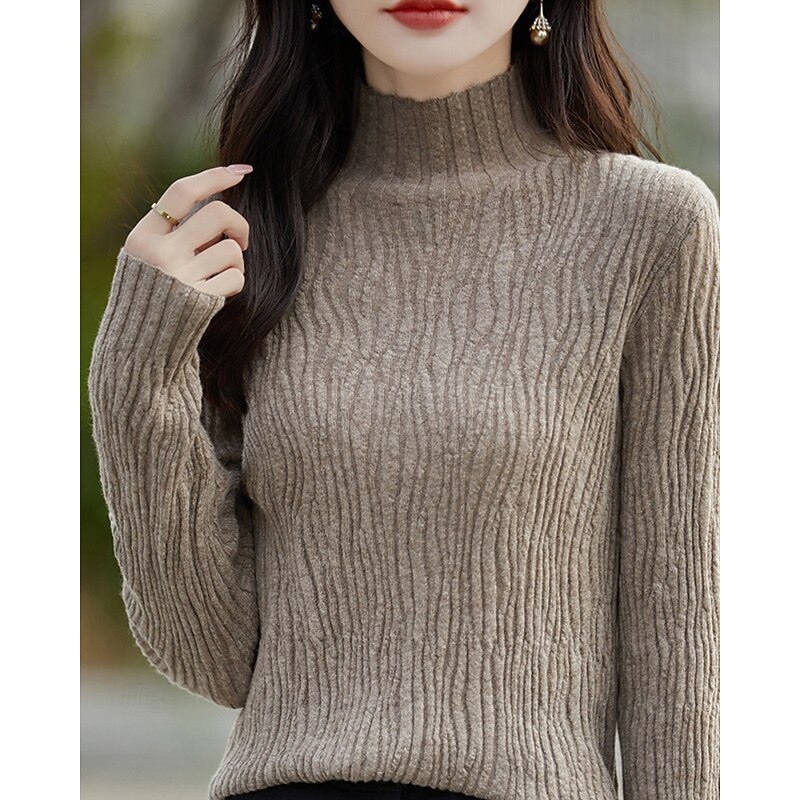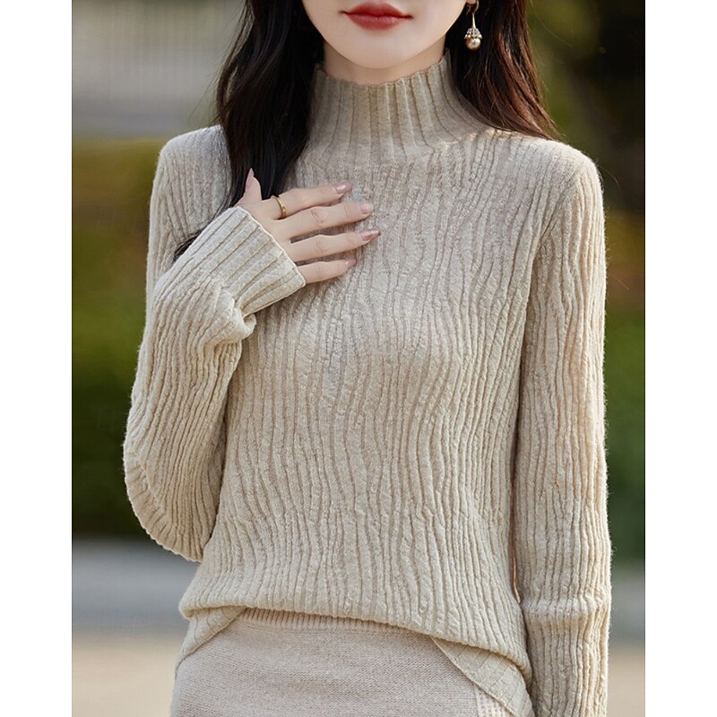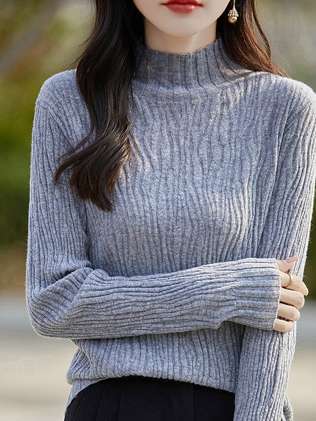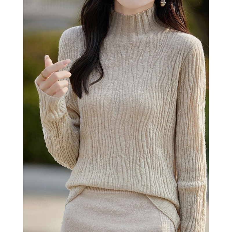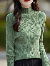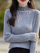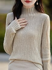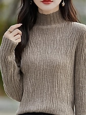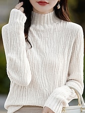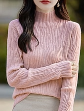 More information about Women's Sweater Pullover Streetwear Casual Solid Color Mock Neck Knitted Long Sleeve Regular Tops Knit Daily Holiday Going out White Pink Fall Winter