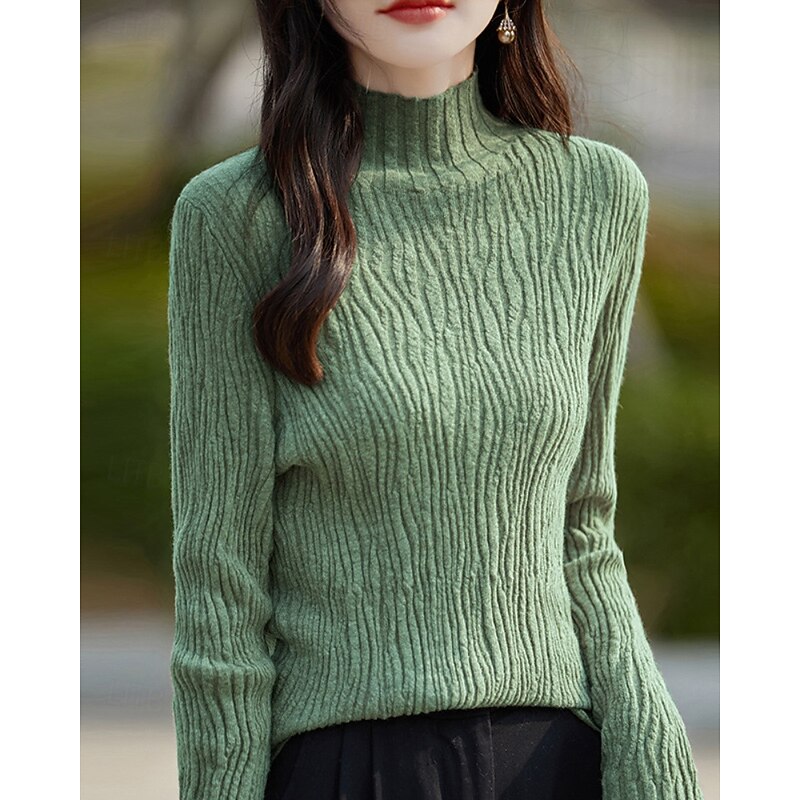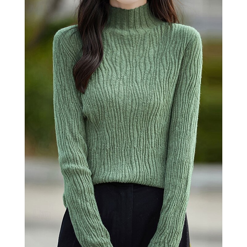 Women's Sweater Pullover Streetwear Casual Solid Color Mock Neck Knitted Long Sleeve Regular Tops Knit Daily Holiday Going out White Pink Fall Winter 15