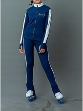 More information about Figure Skating Fleece Jacket Figure Skating Pants Figure Skating Jacket with Pants Women's Girls' Ice Skating Jacket Tights Outfits Blue White Patchwork Thumbhole Spandex Lace Stretchy Training