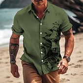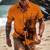 More information about Men's Nautical Vintage Sailboat Shirt Button Up Shirt Short Sleeve Vintage Fashion Designer Outdoor Casual Summer Spring Turndown Print Lake blue Blue Orange Green Khaki
