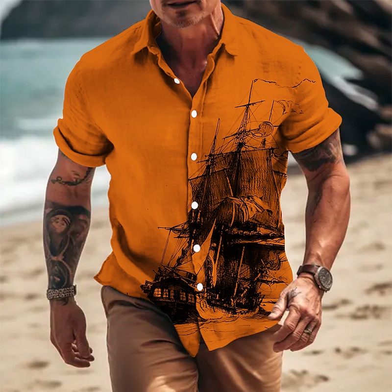 Highlights [Fabric] : Crafted from a lightweight and breathable polyester, this men's nautical shirt offers superior comfort, making it an ideal choice for the warmer months of spring and summer. [Fit] : Designed with a regular fit, this short-sleeve shirt provides a relaxed yet stylish silhouette. Its classic button-down style ensures versatility, easily adapting to both casual and semi-formal settings. [Design Highlights] : This shirt features a captivating nautical and vintage sailboat print that captures the spirit of adventure. The turndown neckline adds a traditional touch, enhancing its timeless design. The natural texture of the fabric lends an element of sophistication, elevating your fashion game effortlessly. [Occasions] : Perfect for casual and outdoor events, this shirt seamlessly transitions from breezy beach gatherings to leisurely weekend outings. Its adaptability makes it a must-have in any wardrobe, offering charm and style for various occasions. [Size Range] : Available in a wide range of sizes from S to 5XL, this shirt caters to different body types, ensuring a comfortable and confident fit for every man.