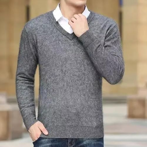 Men's V-Neck Knitted Sweater Thickened Pullover Warm Casual Plus Size Fall Winter Base Layer Top 5
