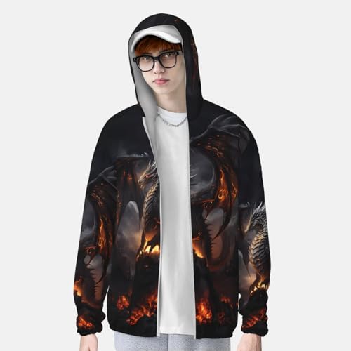 • Fashionable Design: This fire black dragon sun hoodie mens has a unique market design. The zipper design makes it easy to put on and take off; the zip up hoodie men hooded design adds a sense of fashion and also has a good sun protection effect.
