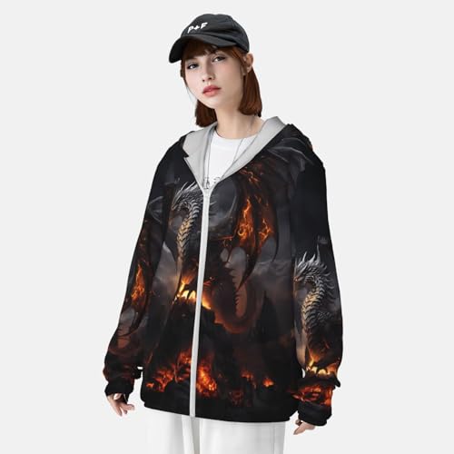 HOT ! Sun Protection Shirt - fire black dragon Zip Up Hoodie Lightweight jacket Long Sleeve Sun Shirts for Men & Women