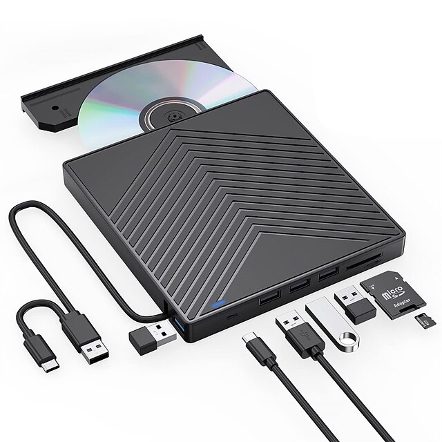 $49.99 - External CD DVD Drive 7 in 1 Ultra Slim CD Burner USB 3.0 with 4 USB Ports and 2 TF/SD Card Slots Optical Disk Drive for Laptop Mac PC Windows 11/10/8/7 Linux OS 2025. Shop for cheap Cables & Adapters online? Buy at lightinthebox.com on sale today!