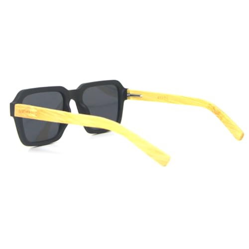 • 🕶️ SQUARE SUNGLASSES | Sunglasses with matte black acetate frames and high-quality bamboo temples. It has polarized gray lenses, giving the glasses an extra charm.