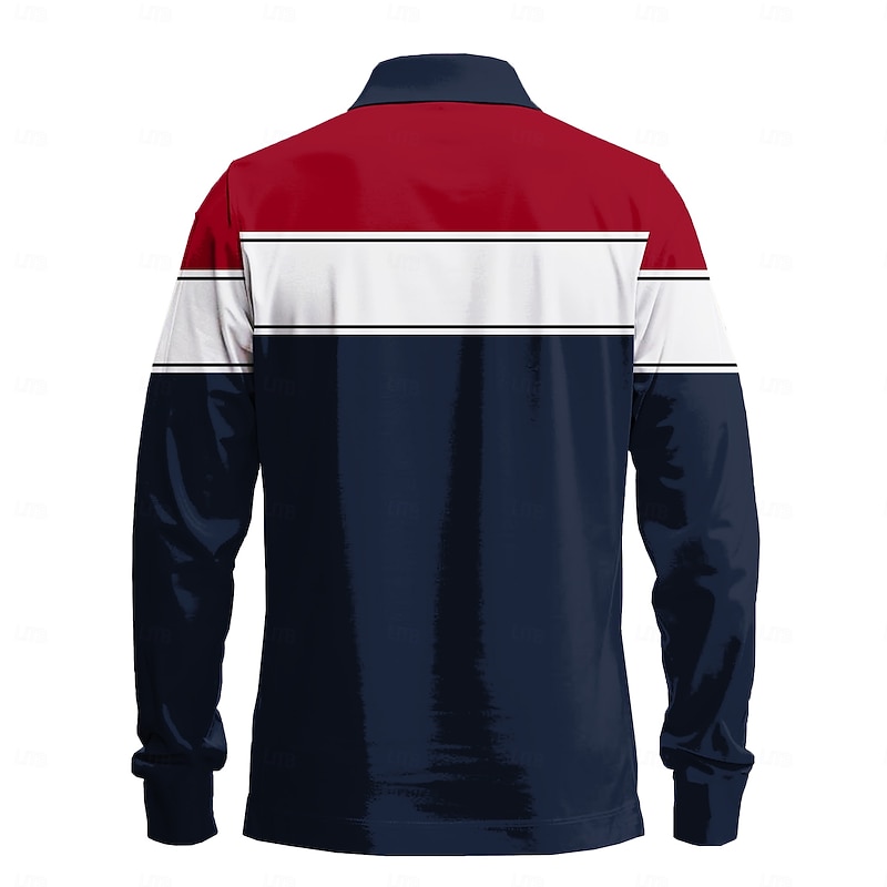 More information about Men's Stripes Rugby Polo Long Sleeve Polo Shirts Collared Shirts Casual Outdoor Athleisure 3D Print Spring Fall Winter Red Blue Purple