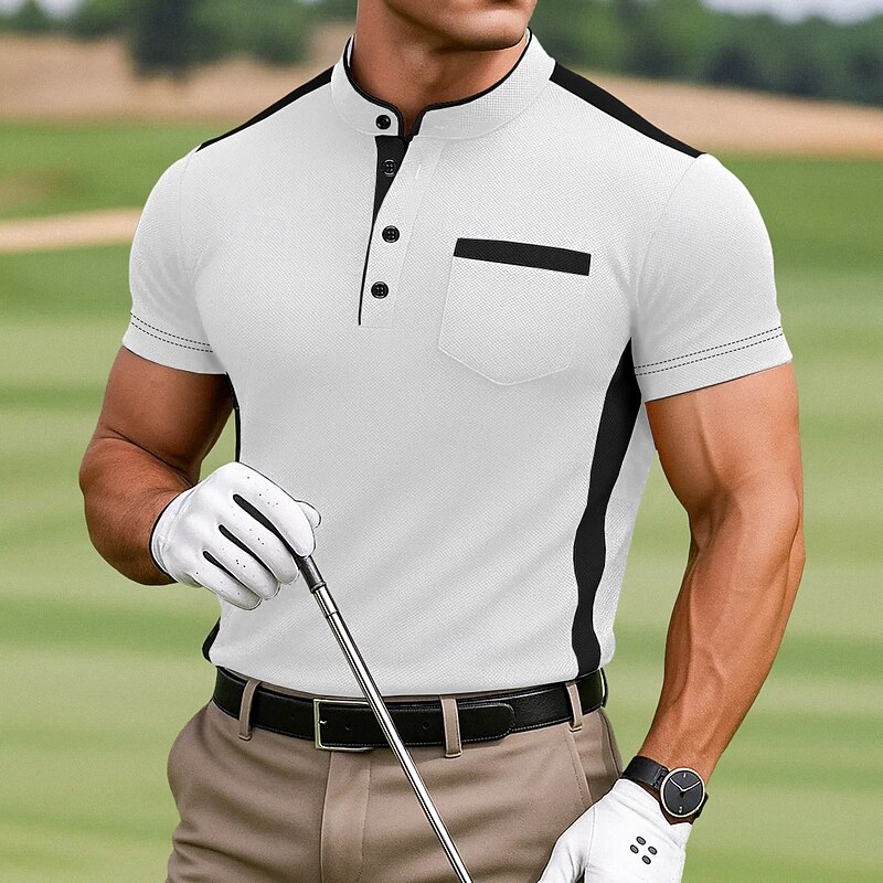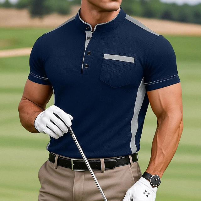 Men's Sports Polo Shirts Golf Polos Shirts Casual Sports Henley Short Sleeve Fashion Comfortable Solid Color Plain Color Block Buttons Summer Spring All Seasons Black White Navy Blue Gray Sports Polo 11