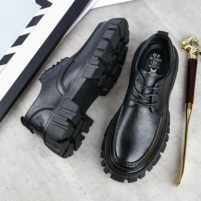 Outer material: PaperClosure type: No-closureMaterial: The upper of this pair of men's thick-soled casual shoes is made of high-quality genuine leather, which is soft and delicate to the touch and durable. The genuine leather material ensures a comfortable wrapping of the foot and excellent comfort and breathability.Comfort: Each pair of shoes is carefully designed to provide excellent support and cushioning, ensuring that your feet are comfortable and stylish from morning to nightSole support: This Mens Shoes is equipped with a flexible rubber sole, which is long-lasting and reduces foot fatigue, allowing you to walk more comfortablyInsole: Made of breathable and supple material; soft and friendly to your skin; suitable for long hours standing and walkingStylish: This shoe can be effortlessly paired with a pair of formal or casual pants;and it can also be paired with skinny or straight-leg jeans Perfect for everyday use. High quality materials and excellent craftsmanship ensure long-lasting durability.