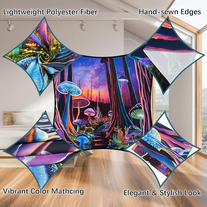 Highlights 【Durable Construction】 Crafted with high-quality polyester fabric, this tapestry is built to last. Its robust composition ensures that you can enjoy its beauty for years to come. 【Soft and Lightweight】 This tapestry is soft to the touch and lightweight, making it perfect for both indoor and outdoor use. 【Multiple Size Options】 Available in different sizes to accommodate any room's dimensions. 【Intricate Design】 The tapestry features a captivating design inspired by life itself. Its vivid imagery, crisp lines, and vibrant colors will become a conversation piece in any room. 【Versatility at Its Best】 Not just for wall decor, this tapestry can also double as a tablecloth or a picnic blanket, adding functional versatility to its artistic charm. 【Note】 1. Please allow 1-2cm (0.4"-0.8") deviations due to manual measurement. 2. Please understand the tiny color vary from the product due to different light and screen display. 3. UV/Black Light Reactive: This glow in the dark tapestry glows under blacklight / UV light. In normal light, the colors also are full and vivid.