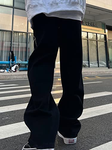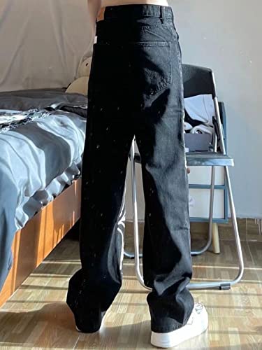 • Features: mens fashion hip hop jeans trousers,streetwear,straight wide leg trousers,loose fit, solid color,washed,classic pockets,button zip closure,crisscross,embroidered,Y2K Harajuku style.