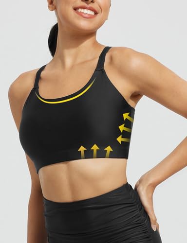 baleaf Women's Swim Bra High Neck Bikini Tops Adjustable Bathing Suit Tops Sports Bra Removable Padded 3