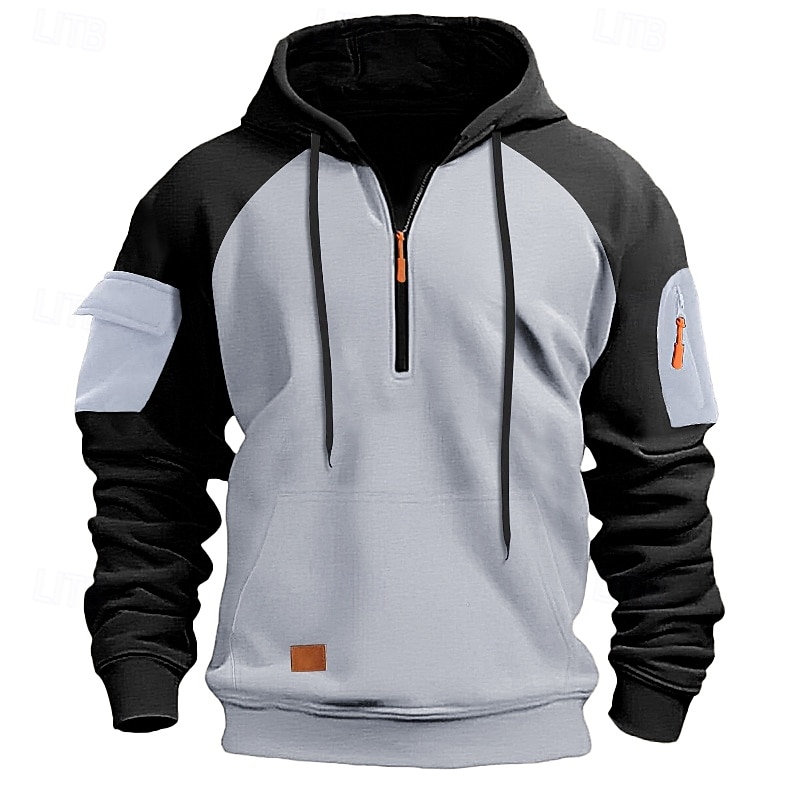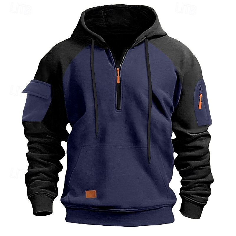 More information about Men's Hoodie Quarter Zip Hoodie Tactical Hoodie Black Navy Blue Khaki Dark Gray Gray Hooded Color Block Tactical Sports & Outdoor Daily Streetwear Cool Casual Winter Spring & Fall Clothing Apparel