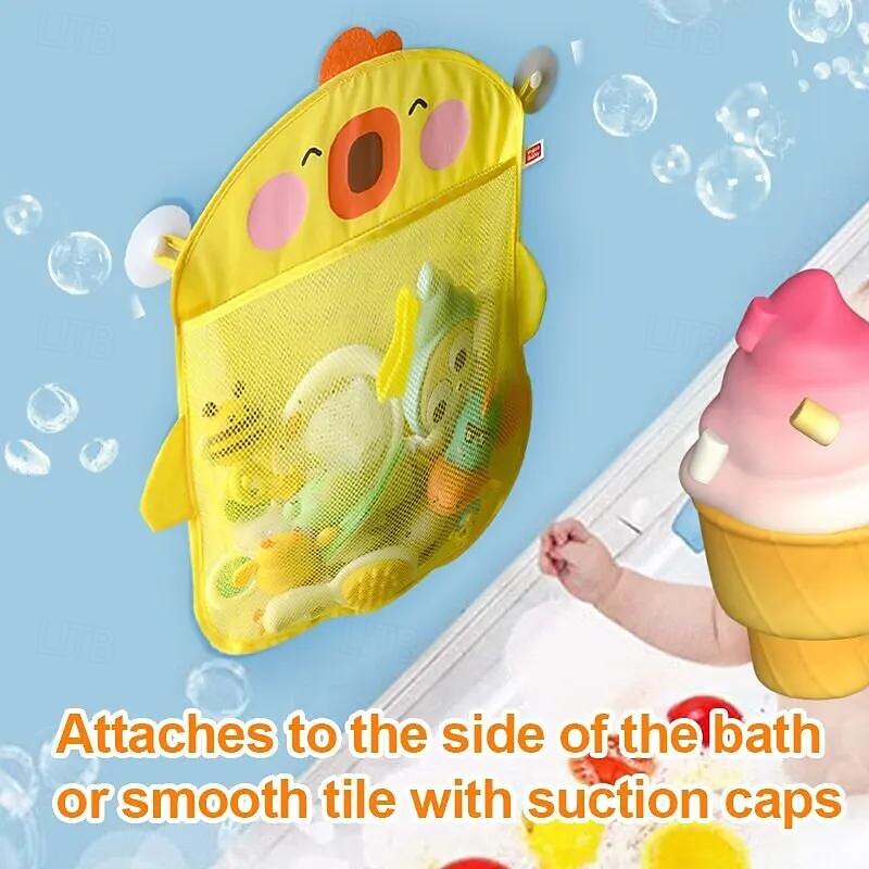Cute Duck Cartoon Extra Durable Washable Mesh Bathroom Toy Storage Holder Organizer Bath Toy For Children Birthday Gift 12