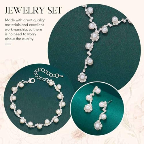 Unicra Silver Pearl Bridal Wedding Jewelry Set Rhinestone Necklace Earrings Bracelet Sets Formal Costume Jewelry for Women and Brides 7