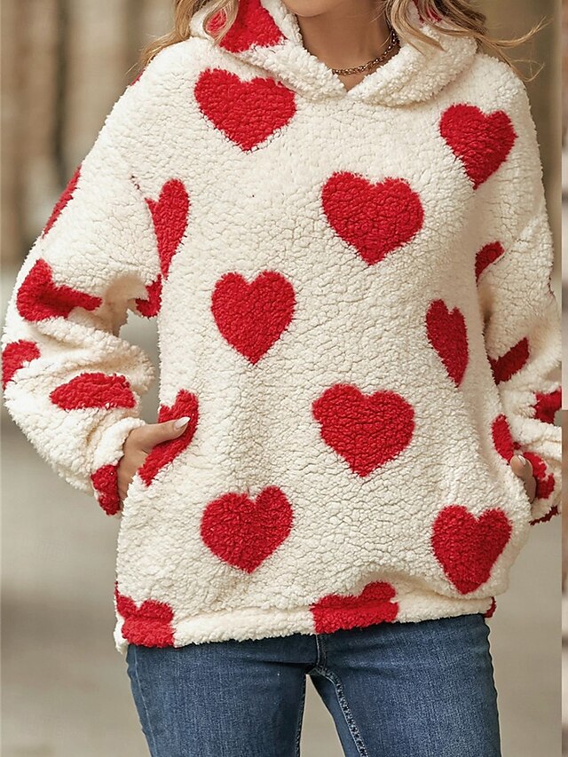Women's Hoodie Sweatshirt Casual Heart Street Dailywear Hoodie Print Long Sleeve Black Red Khaki Fall Winter 12