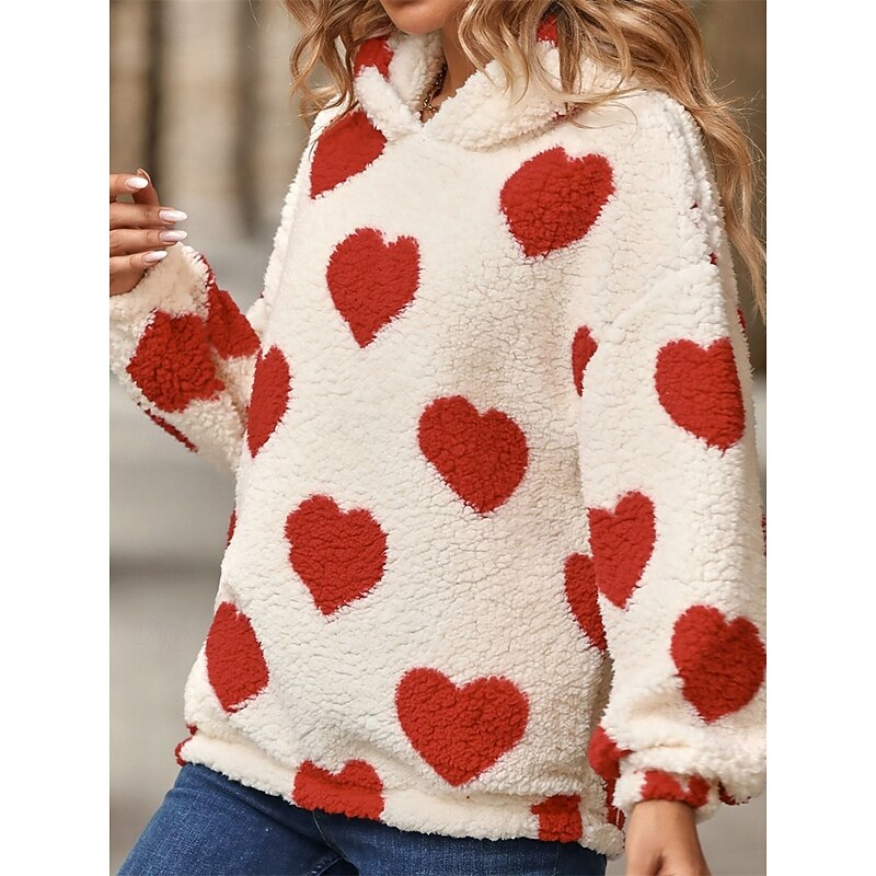 Women's Hoodie Sweatshirt Casual Heart Street Dailywear Hoodie Print Long Sleeve Black Red Khaki Fall Winter 9