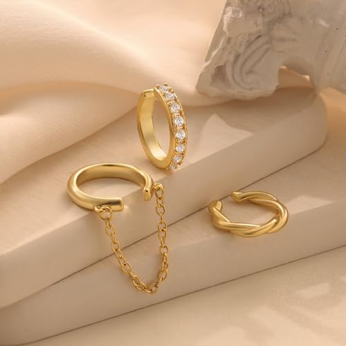HOT ! Gold Ear Cuff Earrings for Women Non Piercing, 14K Gold Plated/Silver Cuff Earrings for Women, Hypoallergenic Cubic Zirconia Cartilage Hoop Earring Fashion Jewelry Set