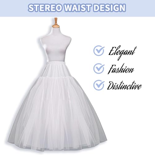 A-Line Hoopless Petticoat Crinoline Underskirt Slips 4 Layers Floor Length Slips for Wedding Dress White 4