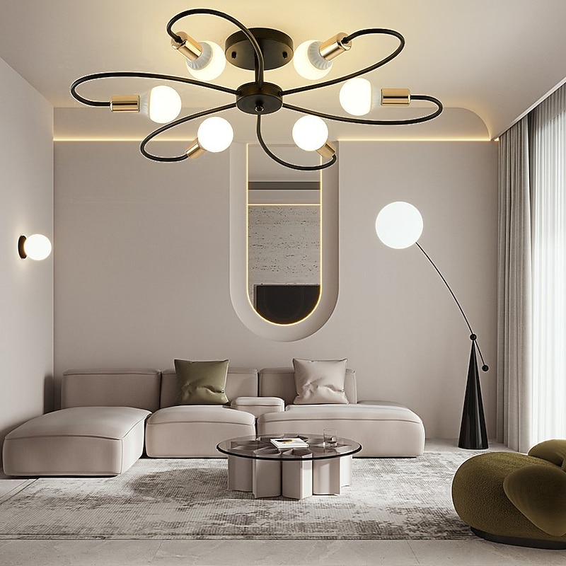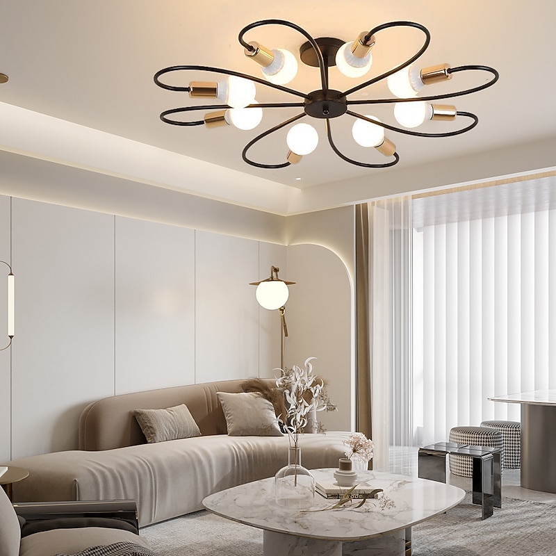 LED Ceiling Light 6/8-Light Dimmable with Remote Contral Flush Mount Ceiling Lamp Acrylic Lampshade Chandelier Bedroom Living Room Flower Shape Light Black/White 110-240V 1