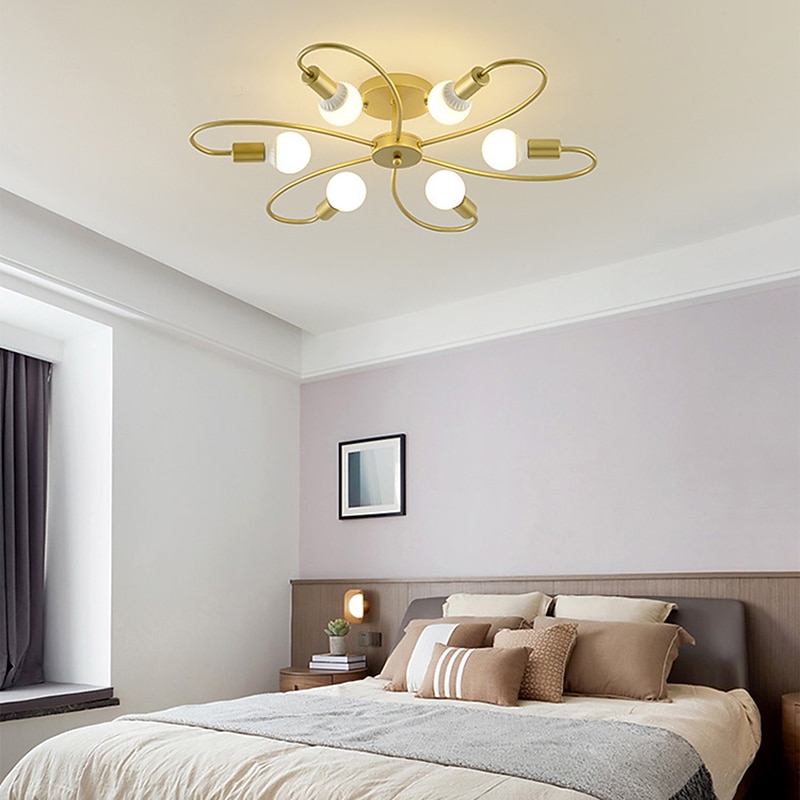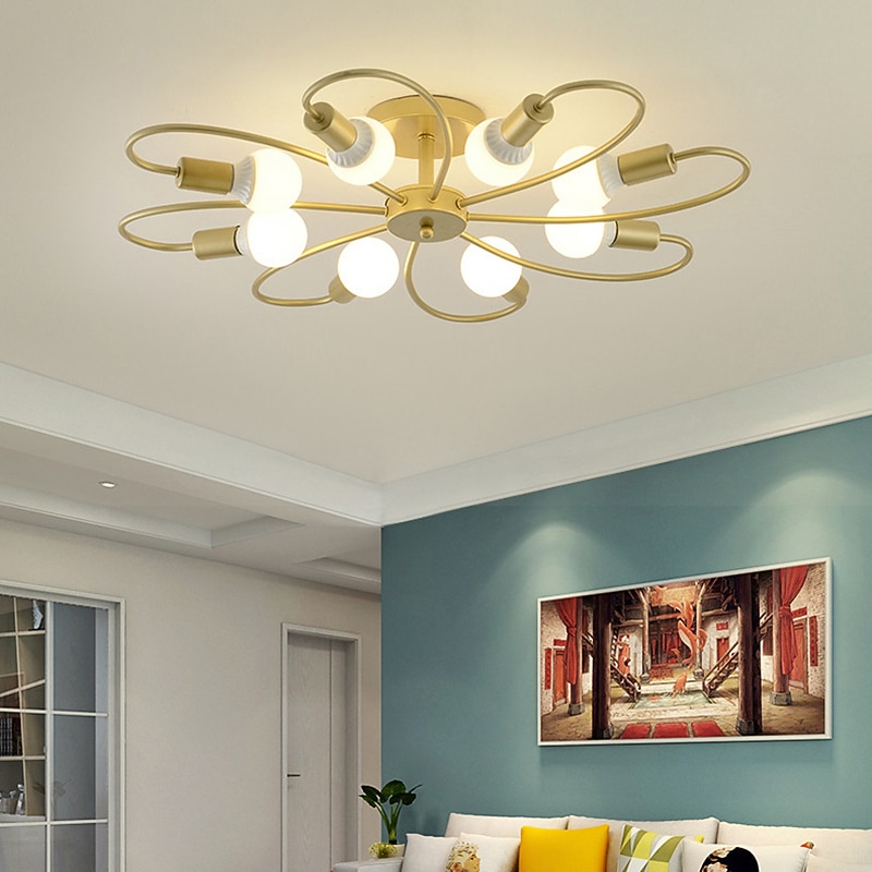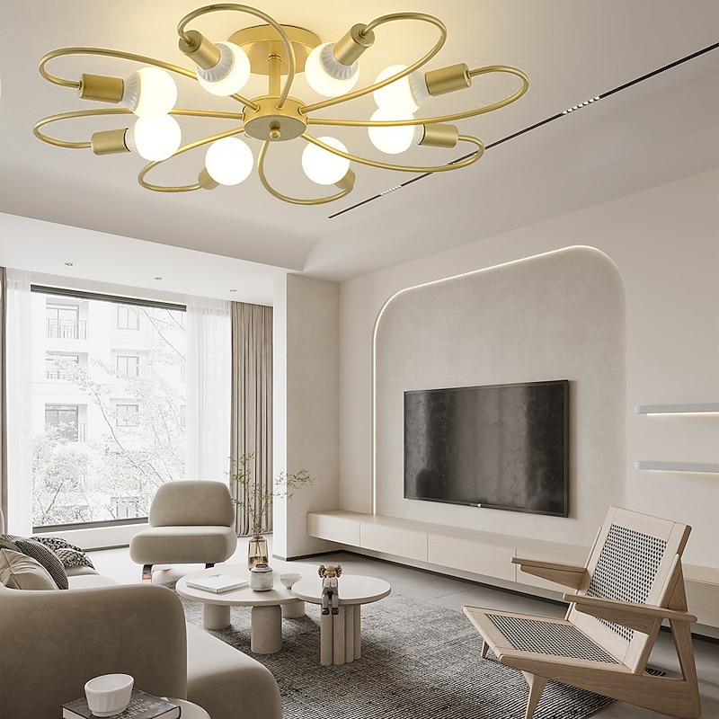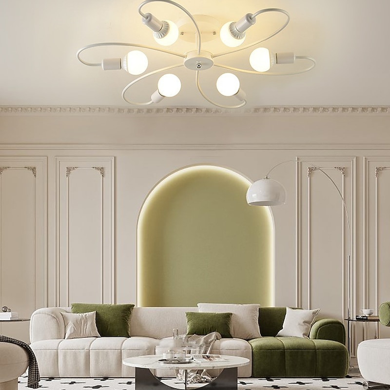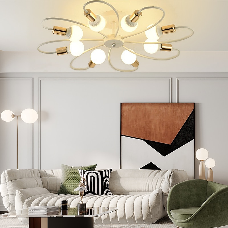 LED Ceiling Light 6/8-Light Dimmable with Remote Contral Flush Mount Ceiling Lamp Acrylic Lampshade Chandelier Bedroom Living Room Flower Shape Light Black/White 110-240V 27