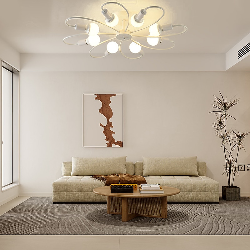 LED Ceiling Light 6/8-Light Dimmable with Remote Contral Flush Mount Ceiling Lamp Acrylic Lampshade Chandelier Bedroom Living Room Flower Shape Light Black/White 110-240V 31
