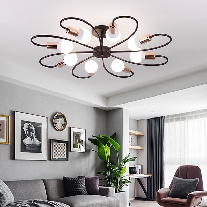 LED Ceiling Light 6/8-Light Dimmable with Remote Contral Flush Mount Ceiling Lamp Acrylic Lampshade Chandelier Bedroom Living Room Flower Shape Light Black/White 110-240V 9