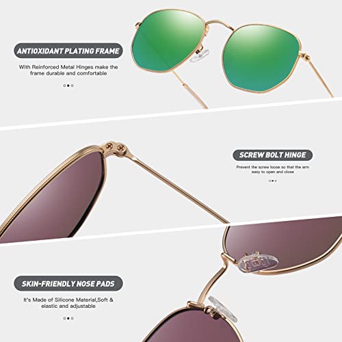 Polarized Hexagon Sunglasses for Women Men Metal Frame Square Small Polygon Sun Glasses UV400 Protection (A) Gold-Green Mirror Lens 3
