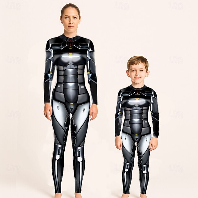 HOT ! Family Jumpsuit Halloween pattern Street Print Silver Black-1 Black Long Sleeve Matching Outfits
