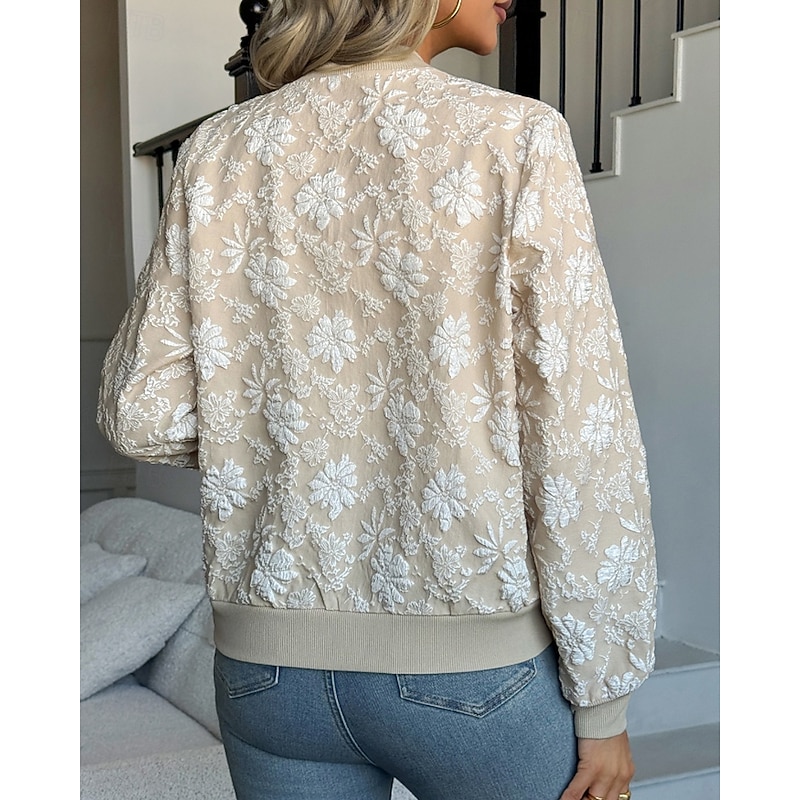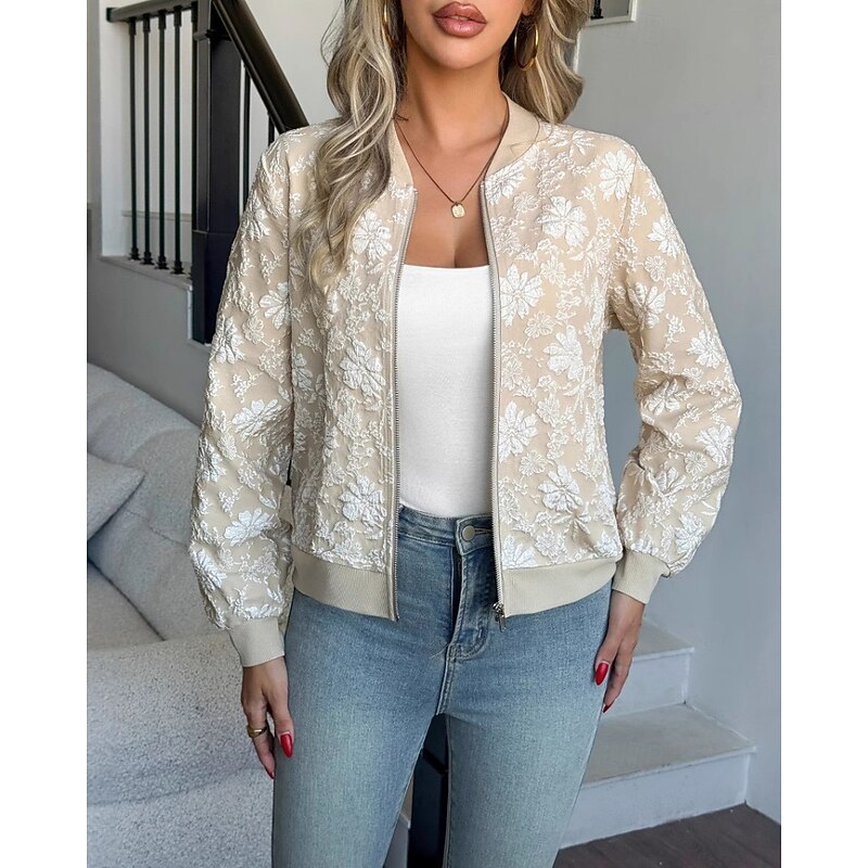 More information about Women's Casual Jacket Comfortable Zipper Pocket Print Fashion Flower Holiday Going out Zipper Regular Crewneck Regular Fit Long Sleeve Outerwear Khaki Fall Winter