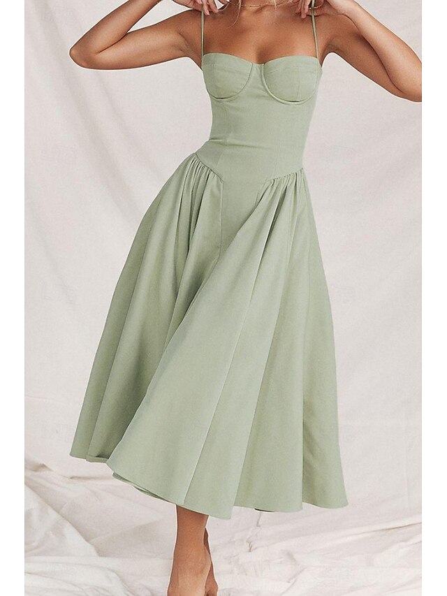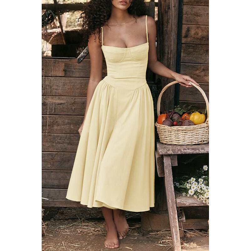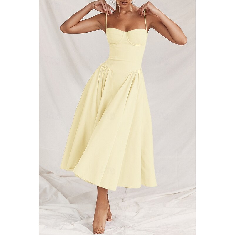 Why Choose Women's Midi Dress White Dress Graduation Dress Slip Dress Fashion just-arrived-age Birthday Graduation Date Regular Fit Plain Sleeveless Spaghetti Strap Black Yellow Light Green Red Summer?