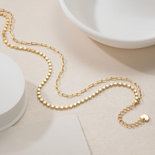 14K Gold Anklets for Women Gold Ankle Bracelets for Women Double-Layer Design Paperclip Beaded Anklets for Womens 5