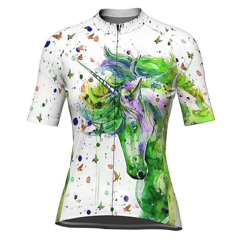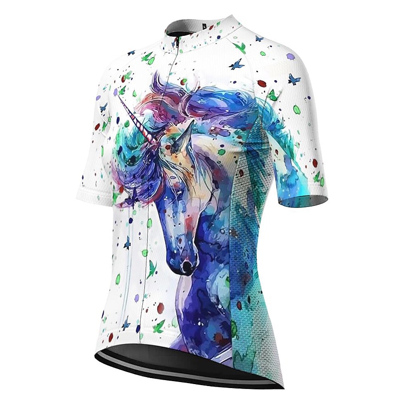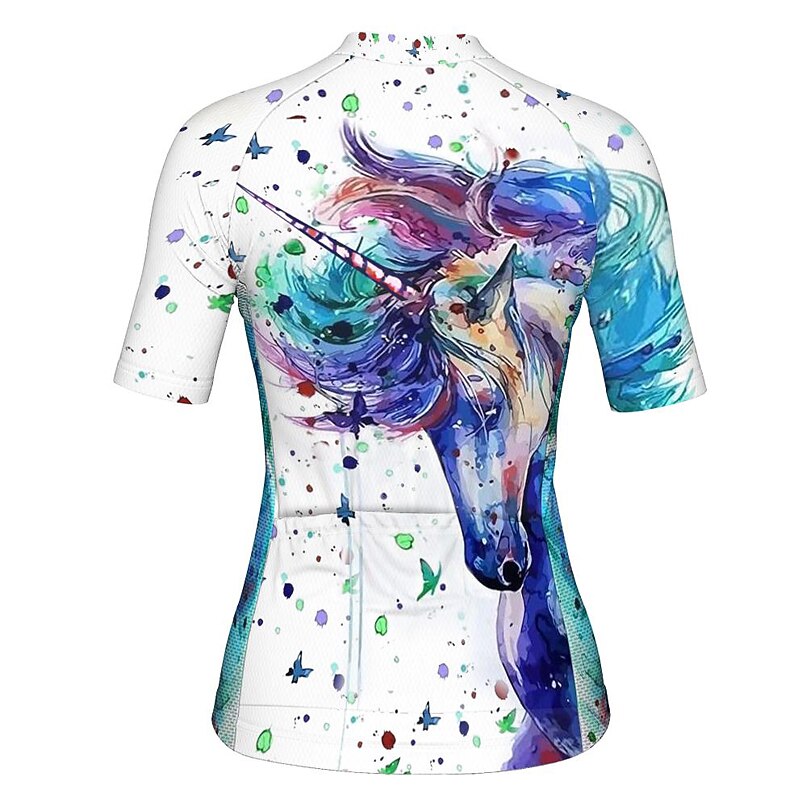 Women's Cycling Jersey Unicorn Short Sleeve Bike Jersey Top with 3 Rear Pockets Mountain Bike MTB Road Bike Cycling Quick Dry Reflective Strips Back Pocket Moisture Wicking Sports White Blue Purple 10