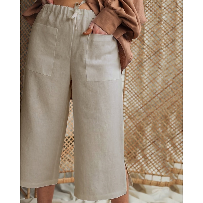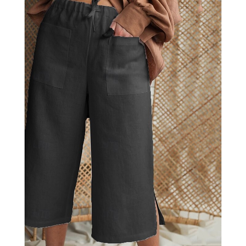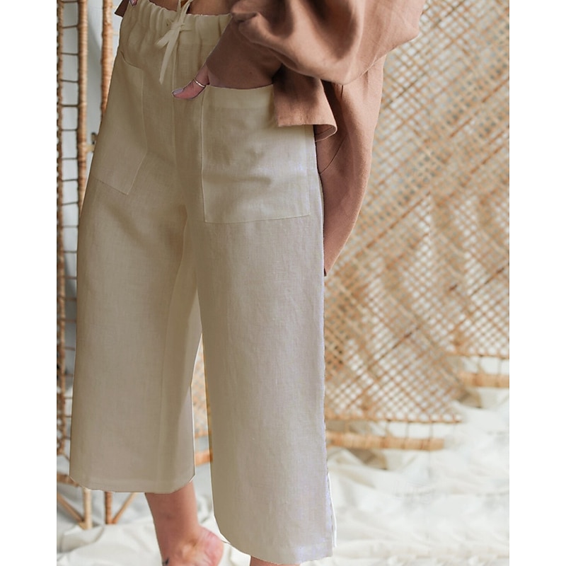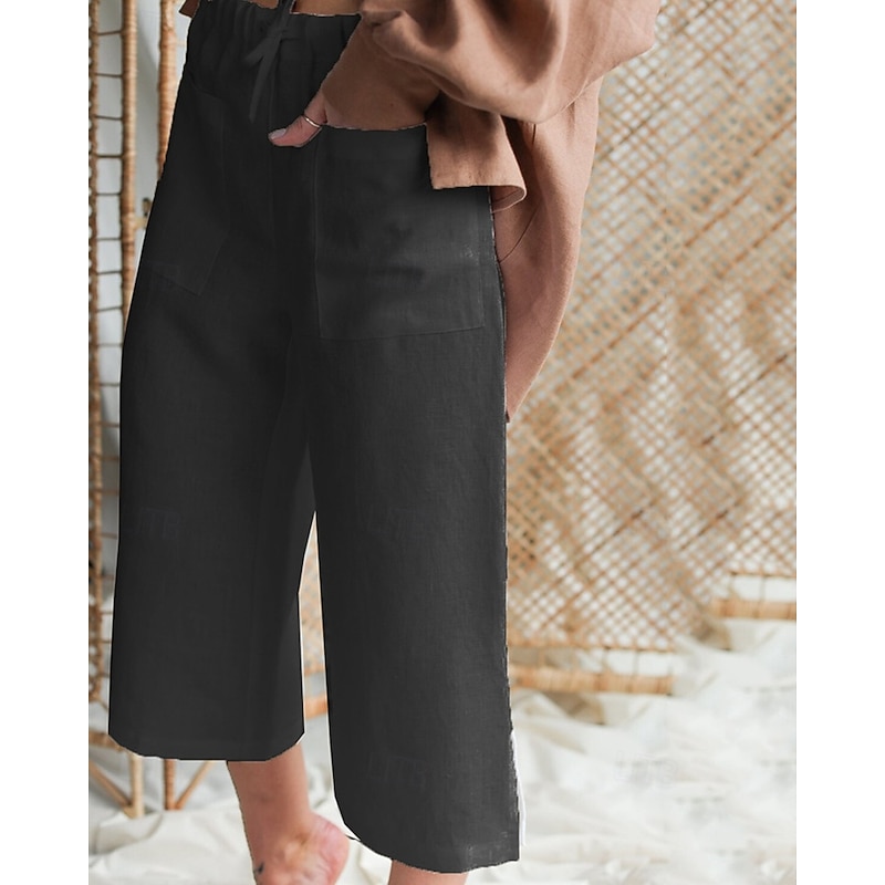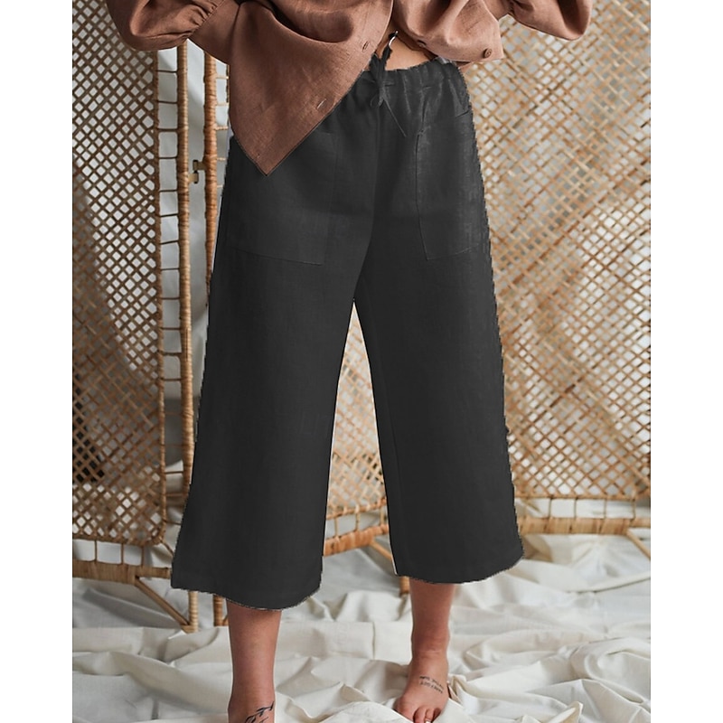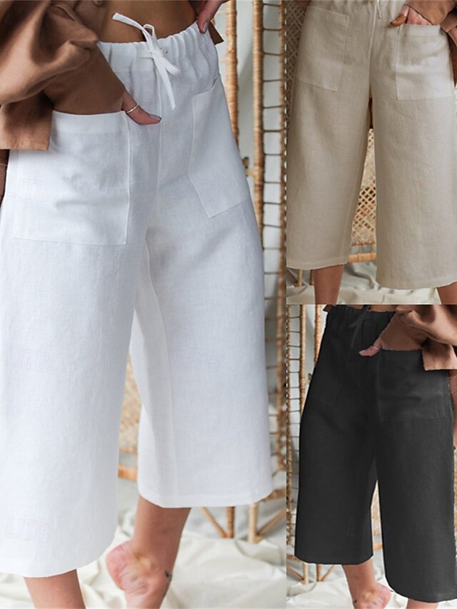 More information about Women's Cotton Linen Pants Palazzo Pants Fashion Streetwear Comfort Calf-Length Mid Waist Plain Elastic Waist Comfy Outdoor Comfortable Street Daily Wear Going out Black White Khaki Summer Regular Fit
