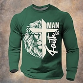 HOT ! Men's Lion Cross Faith T Shirt Long Sleeve T shirt 3D Print Crew Neck Shirt Fashion Daily Designer Street Casual Black Blue Green Summer Spring Fall Clothing Apparel S M L XL XXL XXXL