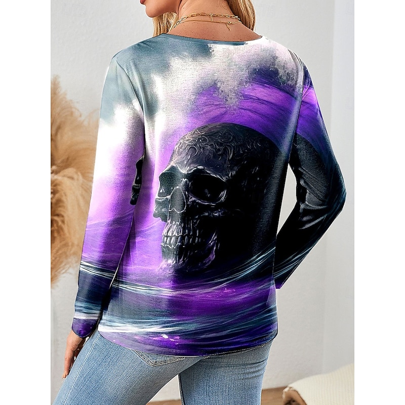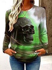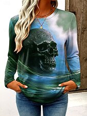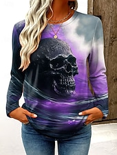 More information about Halloween Women's T Shirt Skulls Graphic Vintage Fashion Stylish Long Sleeve Crew Neck Regular Tops Daily Weekend Print Blue Purple Green Gray Spring Fall Winter