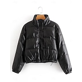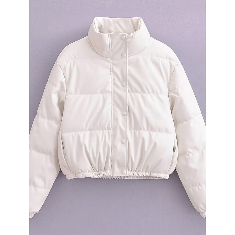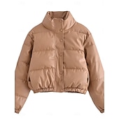 More information about Women's Puffer Jacket Warm Breathable Zipper Pocket Casual Plain Vacation Street Daily Wear Going out Zipper Short Stand Collar Regular Fit Long Sleeve Outerwear Black White Green Fall Winter