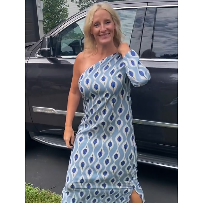More information about Women's Casual Dress Shift Dress Geometric Print One Shoulder Maxi long Dress Casual Daily Vacation Long Sleeve Summer Spring