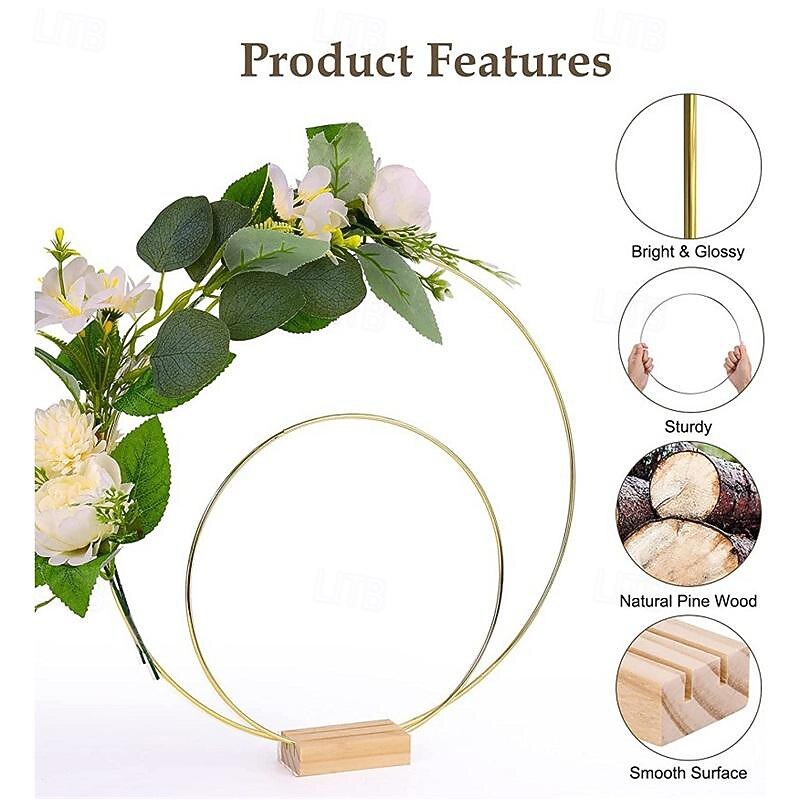2 Pcs Wooden Base Metal Handmade Wreath Iron Ring Wedding Table Decoration Diy Wreath Scene Decoration 4