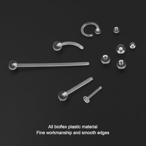 More information about 37PCS Clear Piercing Retainers For Work, Plastic Bioflex Nose Rings Studs Belly Rings Septum Eyebrow Lip Cartilage Tragus Earring Retainer Industrial Bar Piercing Jewelry