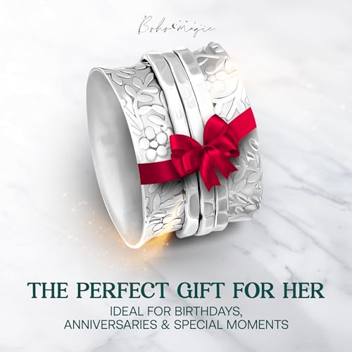 HOT ! Boho-Magic Sterling Silver Spinner Ring for Women – 925 Spinning Ring Band – Wide Band Silver Fidget Rings for Women - for Meditation, Relaxation & Comfort