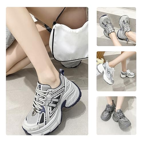 More information about Women's Fashion Platform Trail Sneakers, Leather & Mesh Options, Soft & Breathable, Anti-Collision Toe, Multi-Material Paneling, Trendy Casual Outdoor Shoes